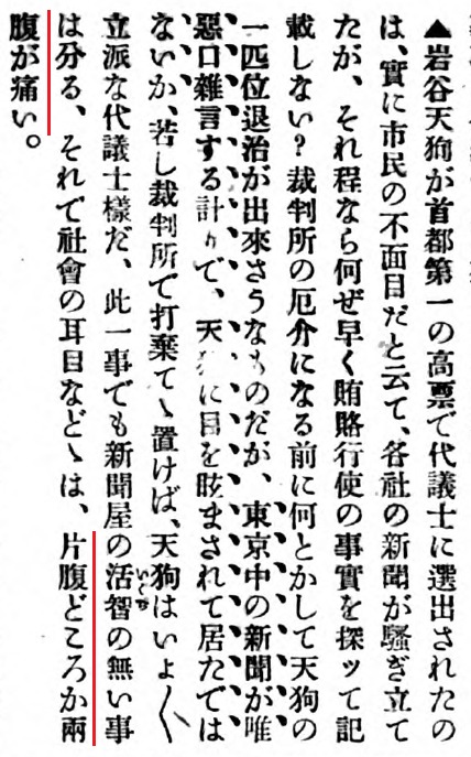 それで社會の耳目などゝは、片腹どころか兩腹が痛い。