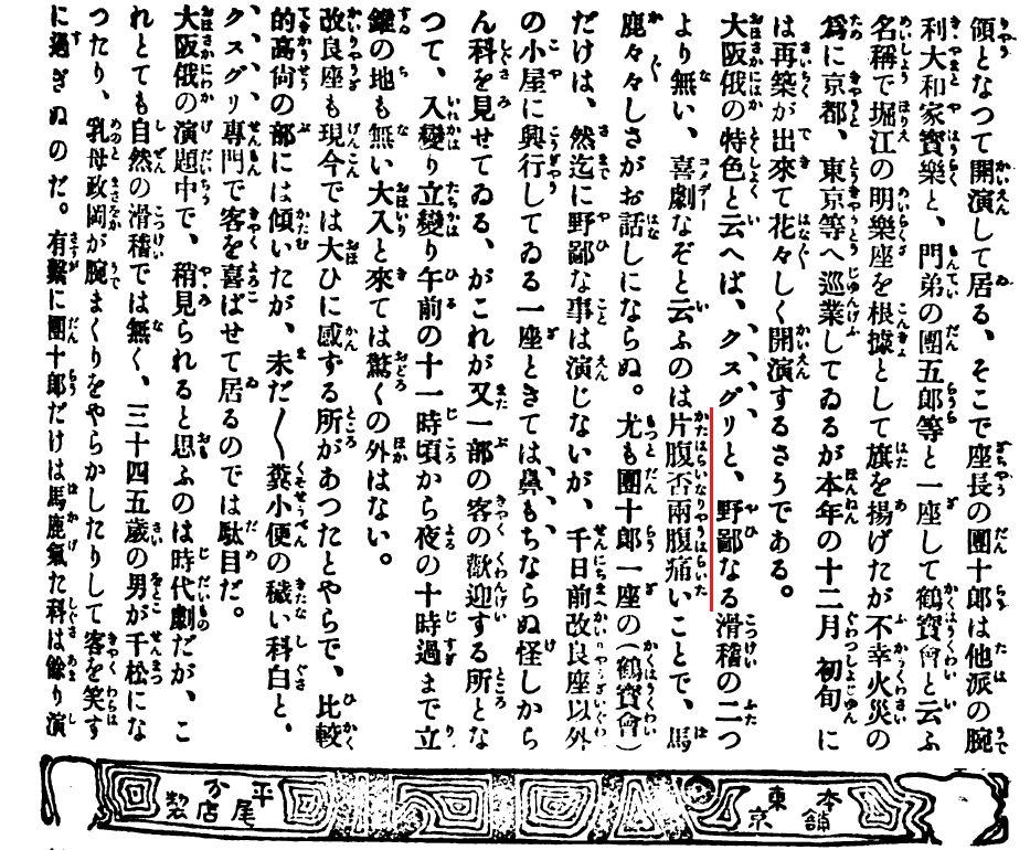 宮本外骨が創刊した『大阪滑稽新聞』を眺めているとき、やにわに「両腹痛い」が出てきて驚いた。