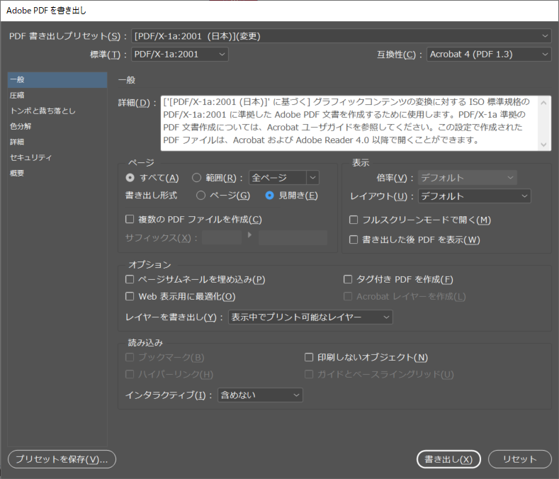 書き出すときは「書き出し形式」を「見開き」にすることをお忘れなく。